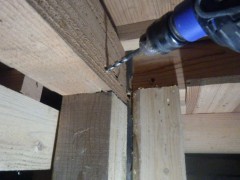 床下の被害部以外にも、今後白ありが入らないように予防の意味もあり主要木部には被害のあるなしに関わらず穿孔処理(ドリルで穴を開ける)を行っていきます。