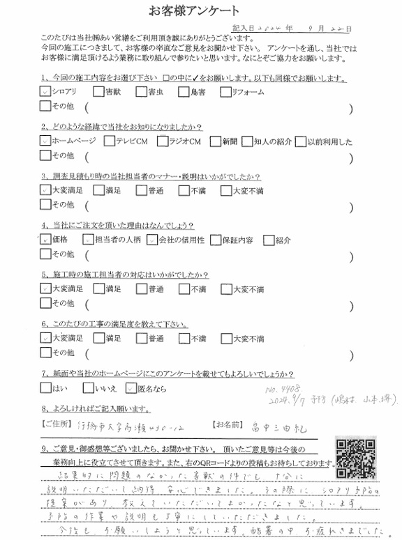 害虫・害獣駆除を通して、いかにしてお客様に満足いただけるかを考えながら、サービスの質を高めていくことをスタッフ一同考えて行動してきました。この記事をご覧いただいた方で、害虫・害獣駆除についてお悩みであれば、相見積もりでも構いませんので、気軽にご相談連絡おまちしています。