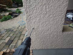 玄関周りは白ありが発生しやすい場所です。こちらは床下から侵入できませんので土間に小さく穴を開けて薬剤を注入します。