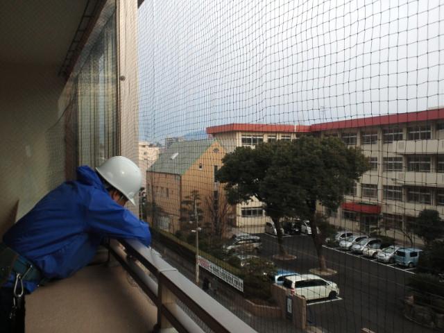 鳩ネット、防鳥ネット、ハトの糞害対策    【北九州市】マンション、ベランダの鳩ネット取り付け