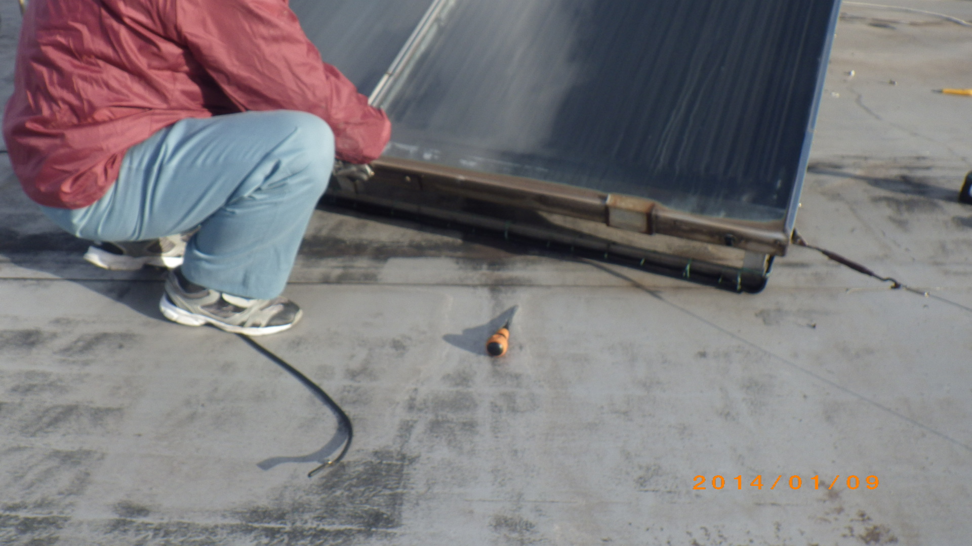 太陽熱温水器を二階の屋上から降ろしました