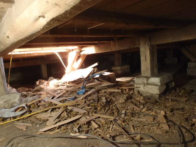 今日は小倉南区のN様邸で床下の白蟻調査見積をさせて頂きました。N様は奥様立会いの調査見積で、当社ホームページを見てのお客様です。きっかけは「廊下がブカブカする箇所があるので白蟻じゃないやろか?」というものでした。 結果から申しますとそこ...