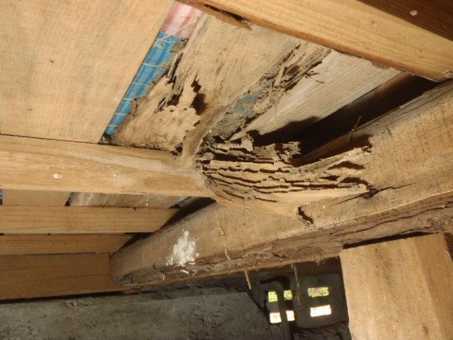 写真は畳の裏側が白蟻によりボロボロになっているところです。