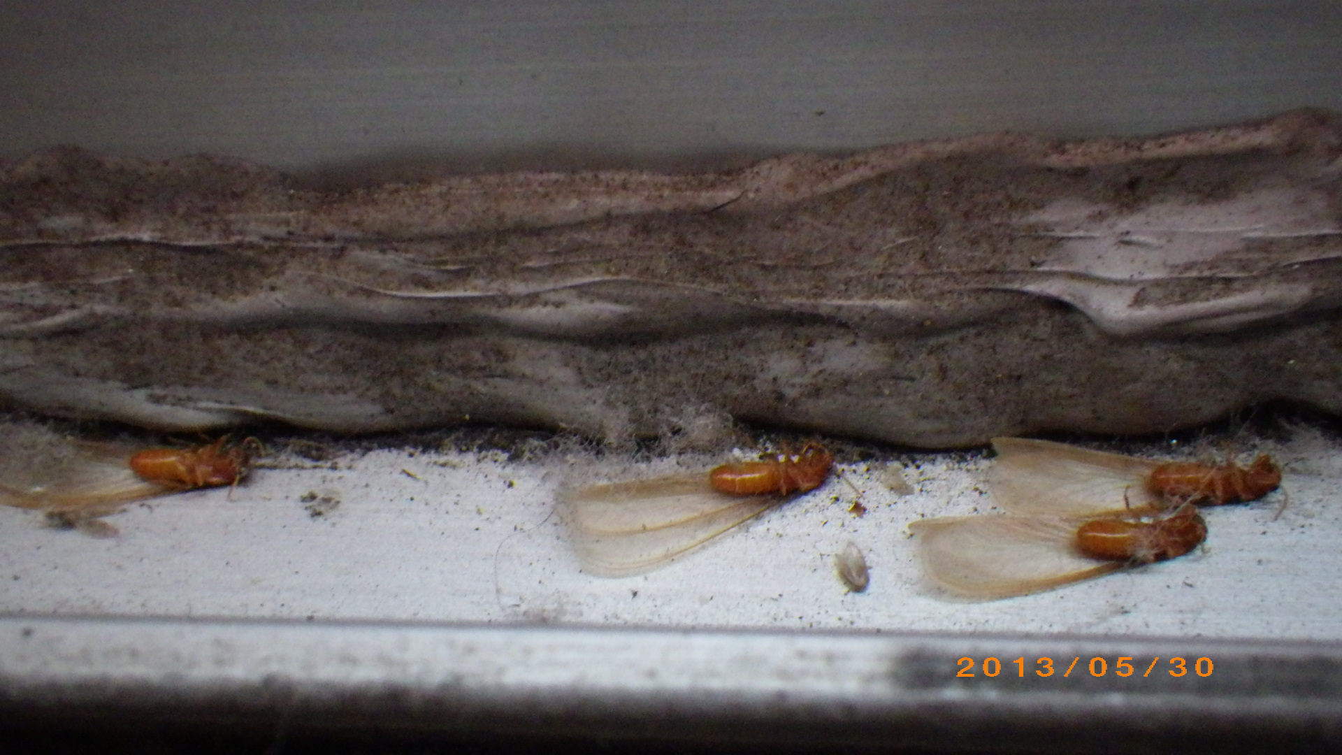茶色い色をした虫ですので白蟻と気づかない方が多いようですj。このような虫です。この写真は羽アリが出てつばめがいっぱい食べよる...