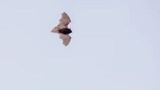 日が傾きかけた頃、夕方の空にコウモリが飛び交っている風...