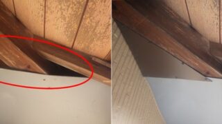 中津市のお宅の屋根裏から動物の鳴き声が夜な夜な聴こえてくるそうです。家主の方が心配になりお電話でご相談されました。調査の結果やはり害獣、おそらくイタチかアライグマの侵入が確認されましたので、駆除施工を行いました。